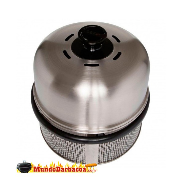 - INCLUYE: Base y recinto interior de acero inoxidable / Cesto para combustible / Tapadera de acero inoxidable con pomo para sujeción / Plancha estriada antiadherente Premier+ / Parrilla de asar / Asa insertable para manipular el cesto de combustible y la parrilla / Pies antideslizantes / Manual de usuario.